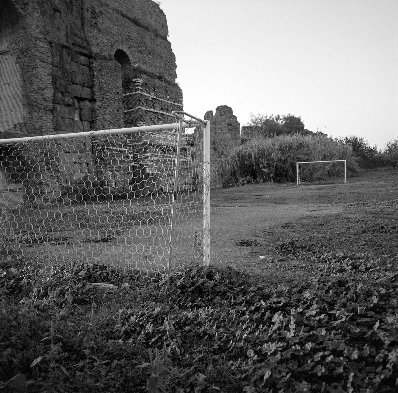 La exposición muestra distintas realidades del fútbol. Las fotografías de Adam Wiseman muestran a niños de bajos recursos jugando en espacios periféricos. Aquí el fútbol aparece como una constante de alegría y vitalidad dentro de contextos marcados por la precariedad. Por otro lado, la obra textil de Sofía Echeverri —compuesta por pañuelos bordados con frases y relatos de las futbolistas mexicanas del primer Mundial Femenil de 1970— pone el foco en la exclusión histórica de las mujeres en este deporte. Una fotografía de Francisco Mata Rosas, tomada en Tijuana, muestra una tumba marcada con una cruz rosa —símbolo de los feminicidios— y, al frente, un balón colocado junto a la fotografía de la muerta. Aquí el juego ya no está en acción, pero sigue presente como parte de la identidad de esa persona. El balón funciona casi como una extensión de su vida, un objeto cotidiano que se convirtió en símbolo de memoria y afecto.