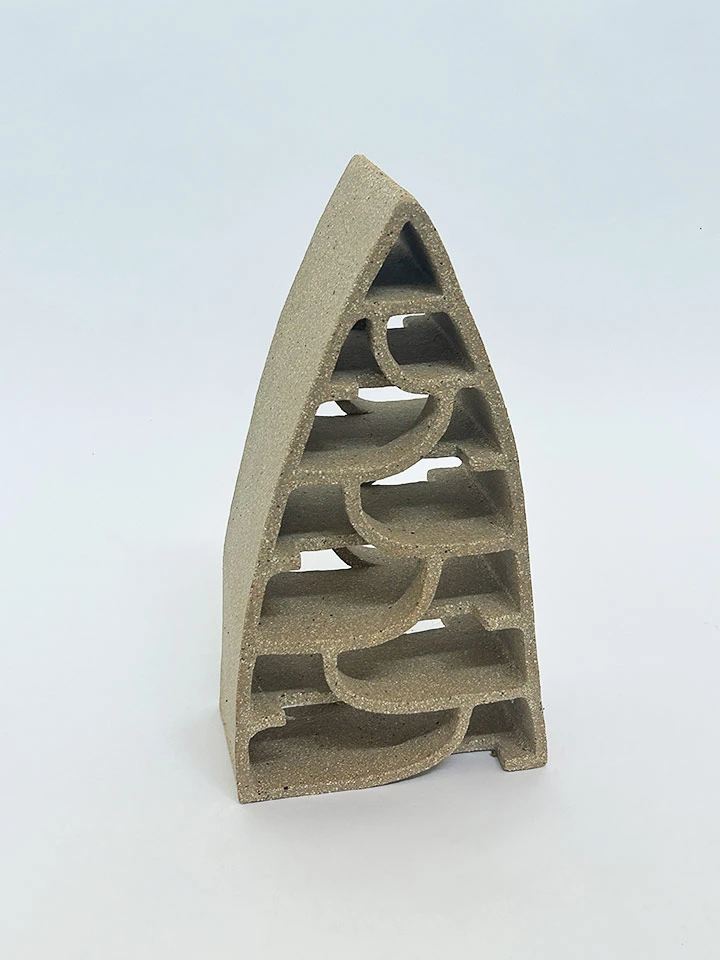 Como si se tratara de un juego de niños, como esa aparentemente ingenua canción infantil que nos remite al infinito: Este era un gato con la nariz de trapo y los ojos al revés… muchas piezas aquí expuestas nos incitan a partir y a regresar, a regresar y a partir, a recorrerlas con la mirada y más adelante en el recuerdo. Hallándolas nuevas y familiares a la vez, tal y como sucede cuando admiramos la perfección de la forma que habita lo mismo en la oruga que en la mariposa, en el huevo y en el gorrión, en el cuenco (que siempre es mitad de algo, que siempre está a la espera de recibir y de dar) y en el laberinto que nos aleja y nos trae de regreso por ese camino que no tiene principio ni fin, cada día recomienza, cada día se reinventa, se bifurca, avanza, retrocede, da un rodeo y llega siempre.